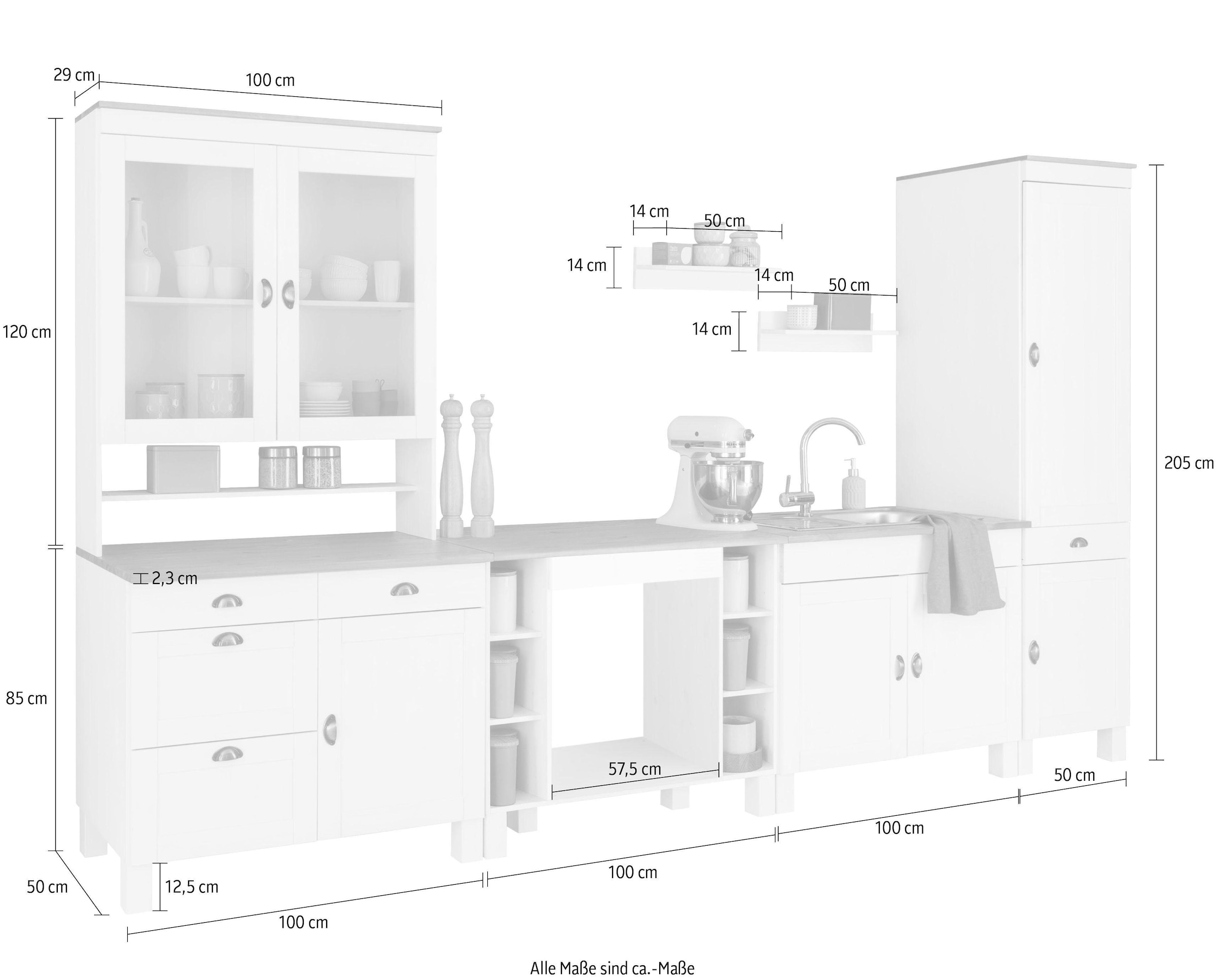 Home Affaire Kuchen Set Oslo 7 St Ohne E Gerate Breite 350 Cm Aus Massiver Kiefer 23 Mm Starke Arbeitsplatte Mit Metallgriffen Landhaus Kuche In 2 Tiefen Erhaltlich Auf Raten Bestellen Universal At